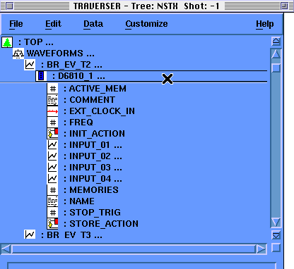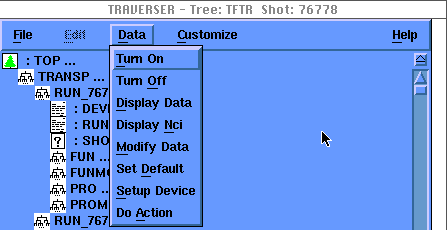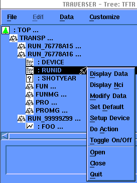 Traverser is an application for the display and modification of MDSPlus trees. It presents a graphical view of the TREE hierarchy and a set of command buttons to manipulate it.
