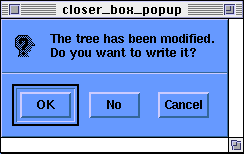If the tree was open for edit, and was modified, a question box will appear to ask you if you want to save the changes. See Close Box from the additional topics below.