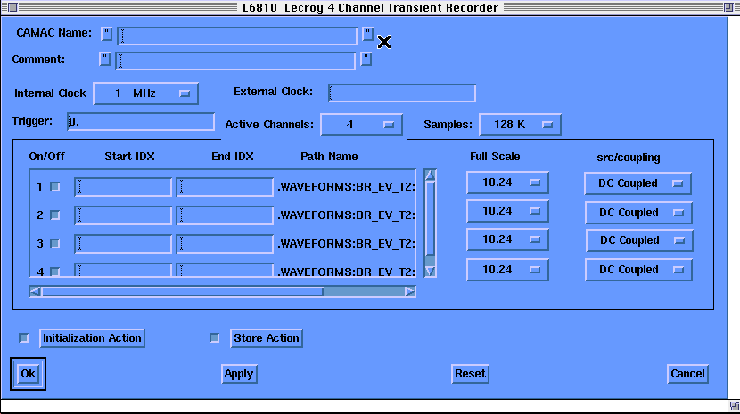 Choose Setup device from the Mouse Button 3 menu (Fig. 12), and reach the CAMAC parameter setting window for this device (Fig. 13).