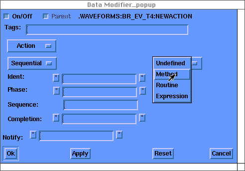 Choose Modify Data to change the data in a node. This button will operate on either all of the selected nodes, or the node that was under the mouse when the right button option menu was brought up.